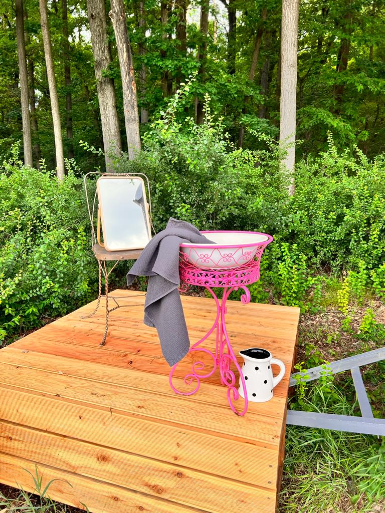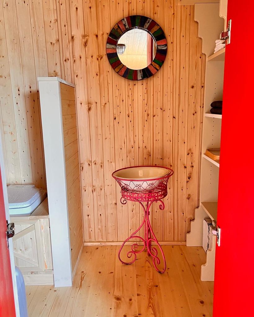 Osprchovat se můžete v lesní koupleně. K dispozici jsou 2 solární nádrže s vodou o obsahu 2x 20 l. Jen pozor na teplotu a prosíme nepoužívejte mycí přípravky, jelikož všechna voda teče zpět do krajiny, děkujeme.